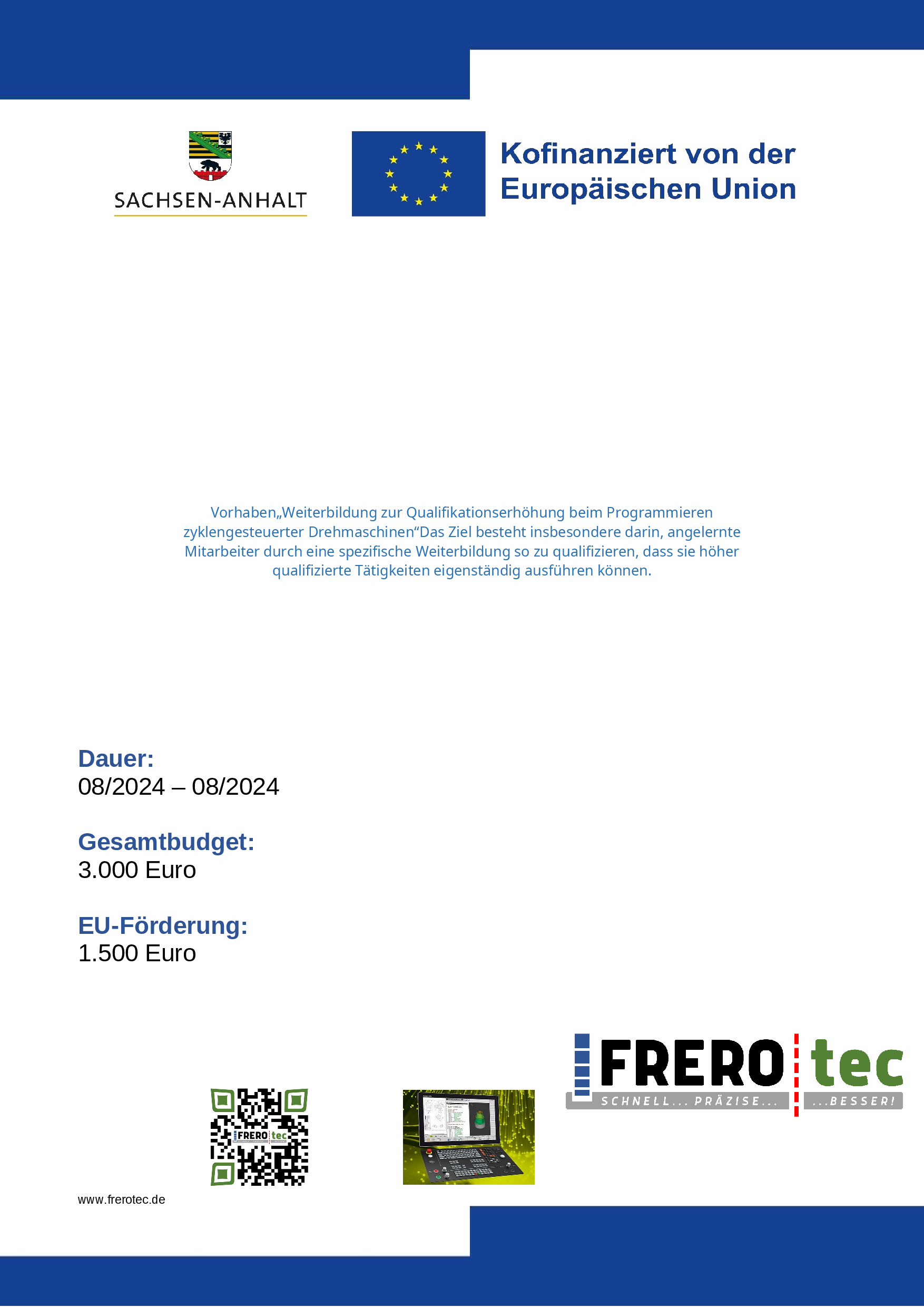 Diese Schulung wurde kofinanziert von der Europäischen Union und dem Land Sachsen-Anhalt. Das Gesamtbudget betrug 3.000 Euro, davon wurden 1.500 Euro durch die gefördert.