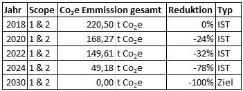 Im Vergleich zum Ausgangsjahr 2018 haben wir bis Ende 2024 bereits eine Reduktion der CO2-Emissionen in Höhe von 78% erreicht.